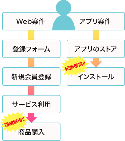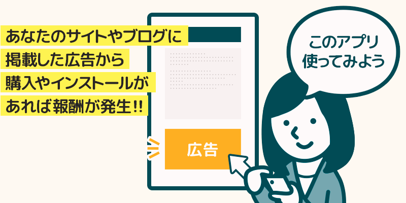 貴方のサイトに当サイトの広告を掲載し、ユーザーがその広告経由で入会・購入していただき、実績に応じて報酬が支払われる「成果報酬型広告プログラム」です。